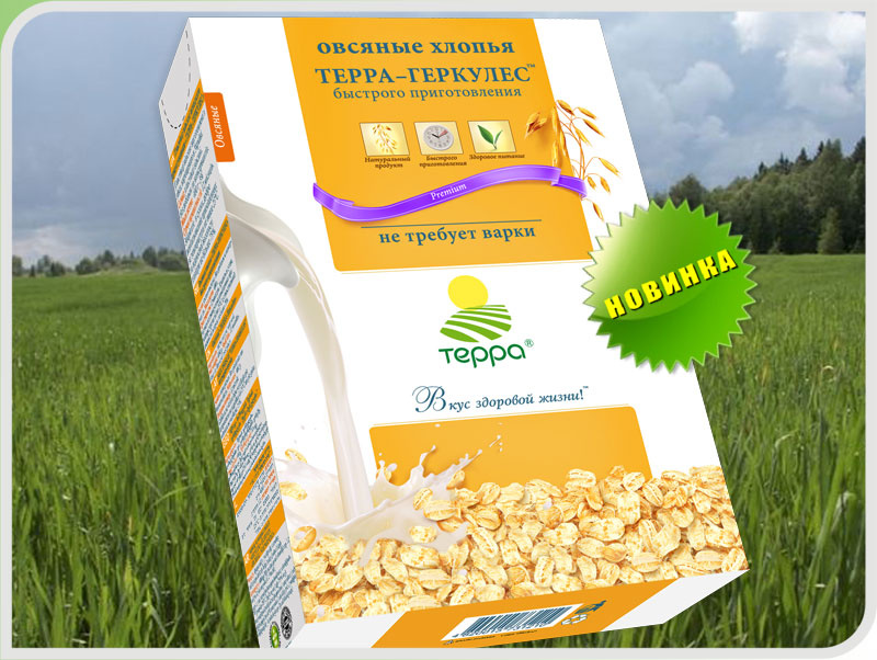 Овсяные хлопья ТЕРРА-ГЕРКУЛЕС® быстрого приготовления изготовлены в соответствии с ТУ У 15.6-30150670-002:2005. Без добавок и консервантов. Не требуют варки. Быстрота приготовления хлопьев позволяет сохранить ценные питательные вещества, которые разрушаются при длительной термообработке. Пищевая ценность в 100 г продукта: белки – 12,7 г; жиры – 6,0 г; углеводы – 65,5 г. Калорийность: 355 ккал. Срок хранения: 12 месяцев.
